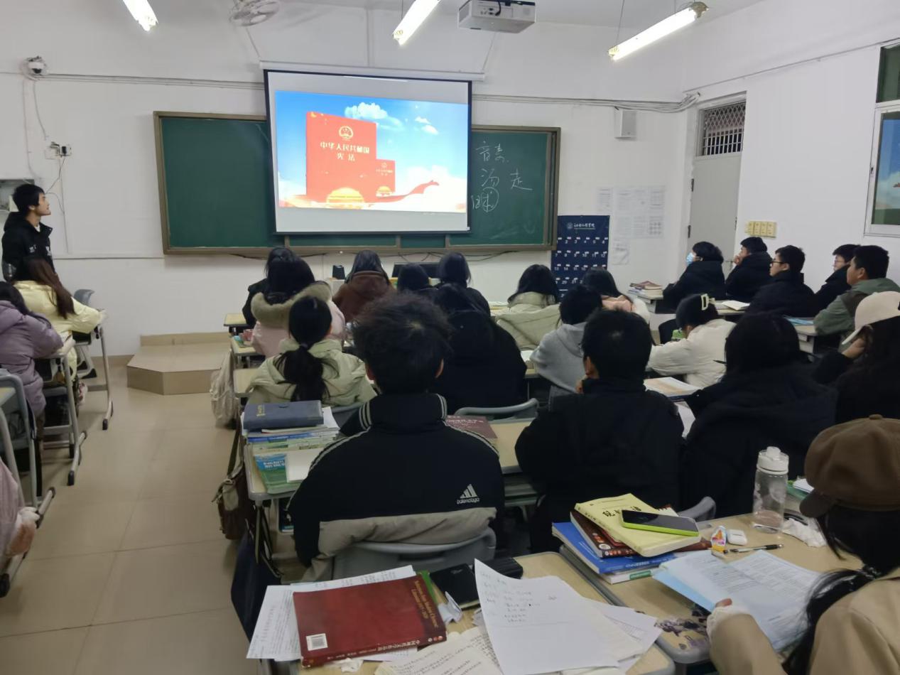 活动当天,各班级在辅导员和班干部的组织下,有序观看宪法主题宣传视频,该视频内容涵盖宪法的历史沿革、基本内容、公民的基本权利与义务等多个方面,通过生动的动画、真实的案例和深入浅出的讲解,将原本枯燥的宪法条文变得鲜活起来。