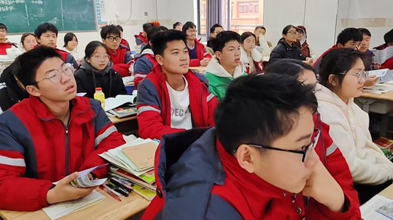 1月7日清晨,我身着公司分发的红色工作服,佩戴工作证回到母校。在校门口与祝老师合影留念后,共同前往高三(22)班开展宣讲。首先,我以轻松的聊天开场,通过PPT展示国家“奖、助、贷、勤、补、免”六大资助体系,并重点讲解生源地信用助学贷款申请条件与办理流程、高校新生入学“绿色通道”实施细则、国家励志奖学金评选标准及奖励额度、校内勤工助学岗位设置与申请方式,希望更多的人能够了解国家资助相关政策。