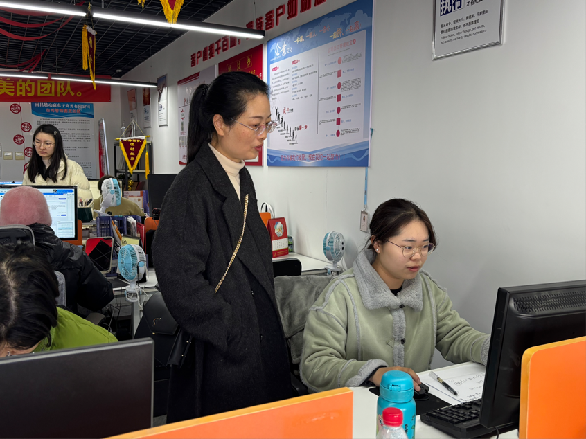 在南昌市自然流电子商务有限公司,谢丽丽与企业负责人就新媒体运营、跨境电商等内容展开交流。公司表示,当前电商行业亟需兼具语言表达能力和数字化技能的人才,希望与公司共建实习基地,联合开展直播营销、品牌推广等实践项目。