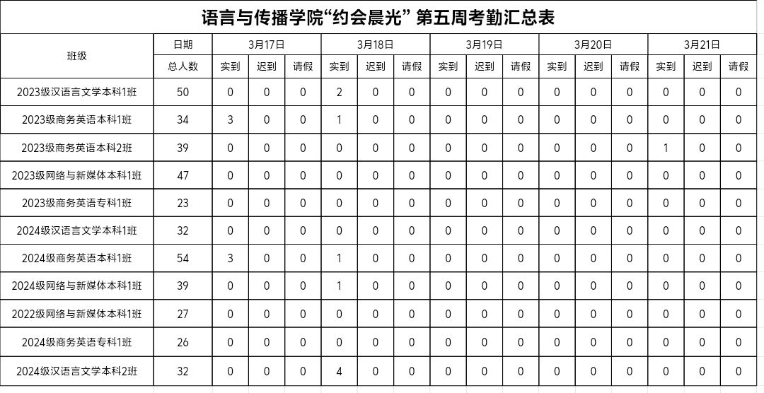 学风建设第1线|第5周卫生考勤情况通报汇总表