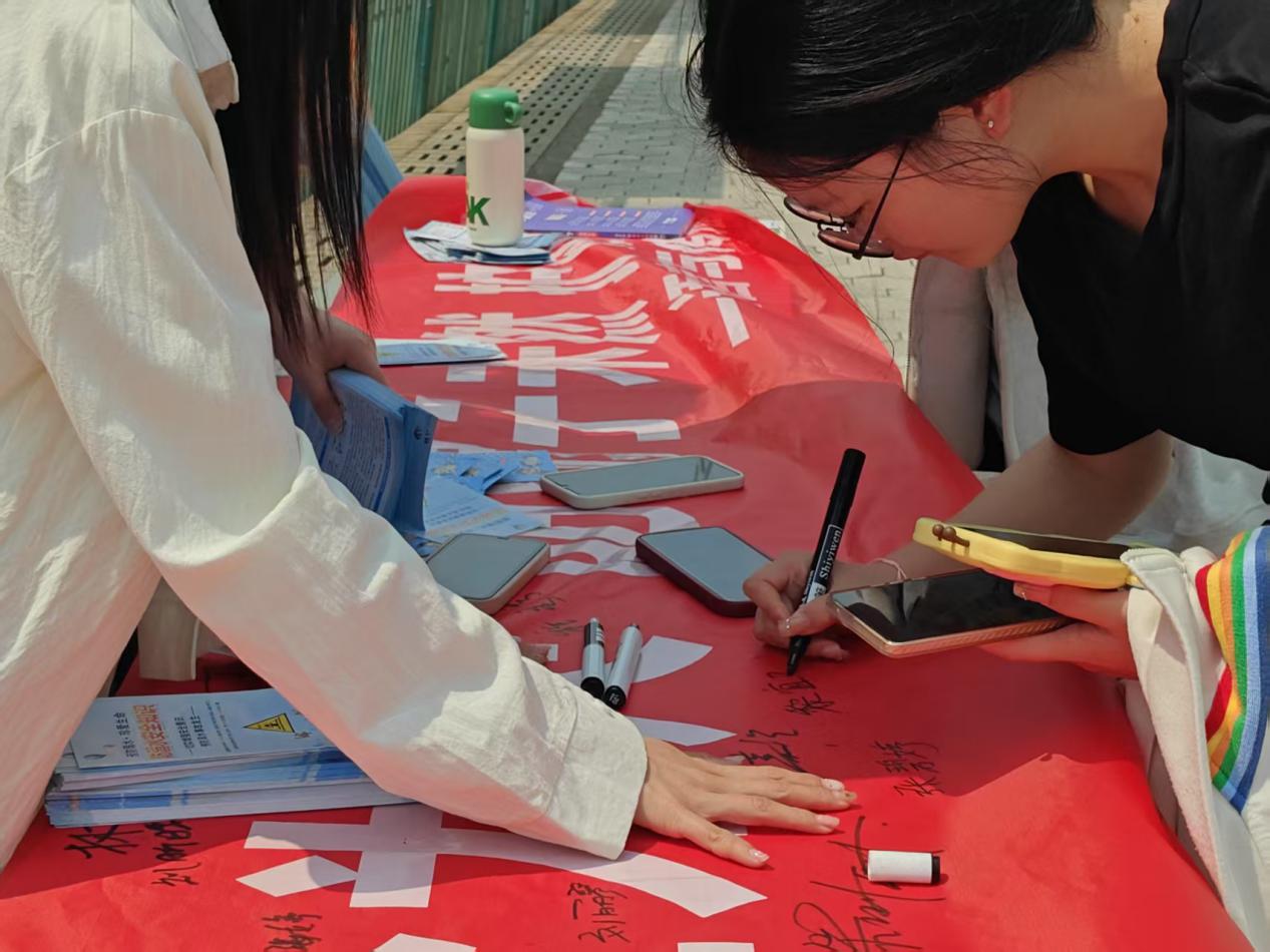 一切准备工作就绪后,志愿者们热情地向路过的同学分发宣传手册,将宣传手册递到每一位路过同学手中,同时耐心叮嘱大家认真阅读,掌握防溺水知识,积极鼓励互动,答疑解惑。