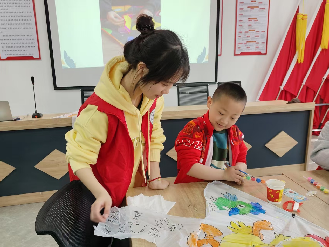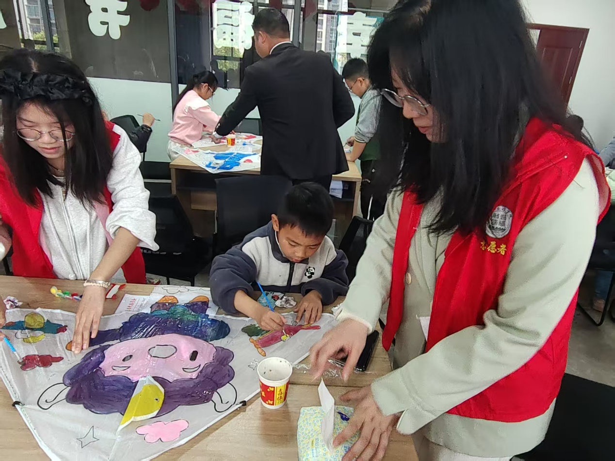 在绘制风筝图案时,小朋友们彻底放飞想象力。有的画出卡通形象,超级英雄、可爱萌宠跃然纸上。志愿者在一旁不时给予鼓励和建议,帮忙调色、勾勒线条,让画面更加生动。历经一个多小时的努力,一只只独一无二的风筝在大家手中诞生。看着自己亲手制作的作品,小朋友们脸上洋溢着自豪的笑容。