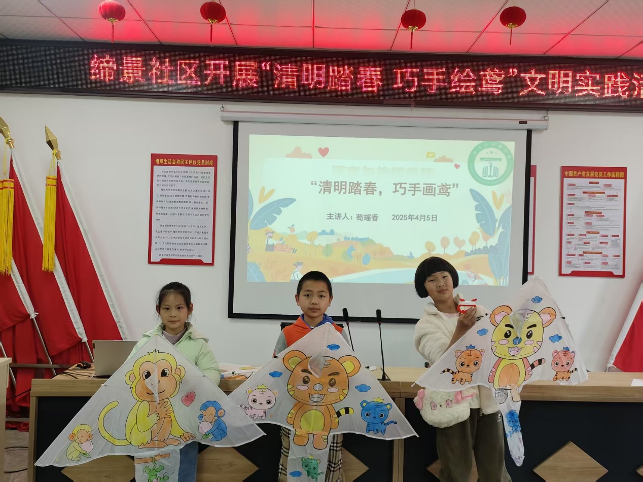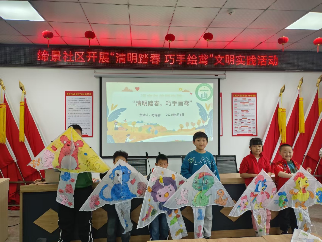 当天,社区活动室内热闹非凡,充满了欢声笑语。桌上整齐摆放着制作风筝的材料,卡纸、竹条、颜料、画笔等一应俱全,小朋友们早早来到现场,眼中闪烁着兴奋与期待。活动伊始,志愿者向孩子们介绍了清明节放风筝的传统习俗,从古人通过放风筝祈福消灾,到如今成为春日里老少皆宜的休闲活动,历史故事与文化内涵深深吸引着孩子们,为这场手工活动增添了一抹厚重的文化底蕴。