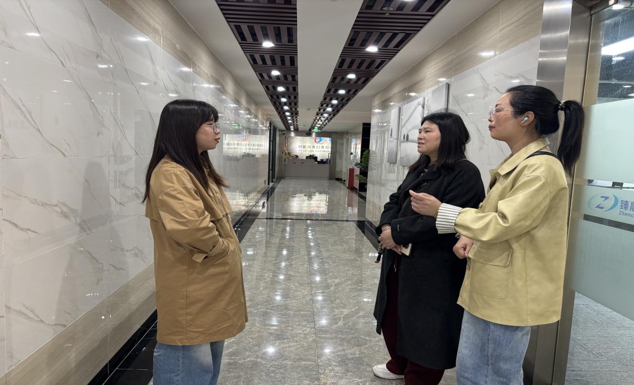 公司一行人分别走访了深圳市天源大地科技有限公司、万国(深圳)科技技术有限公司、深圳市鱼韵视觉文化传媒有限公司、深圳市鑫广汇物流有限公司、深圳市安必昌包装材料有限公司、深圳市华杰科技有限公司、深圳市龙岗区朱本强网球培训中心有限公司、深圳市乐有家控股集团有限公司、深圳市维拓精电科技有限公司、深圳松山影像科技有限公司、深圳市山恒广告传媒有限公司、深圳市星辰方舟网络科技有限公司、深圳智佑科技有限公司、傲基(深圳)跨境商务股份有限公司、深圳闪电猫电子科技有限公司、蔻橙(广州)美妆化妆品有限公司、广州仟极科技有限公司、广州纳美电子科技有限公司、广州市怪我咯珠宝有限责任公司、广州日远贸易有限公司、义乌智购电子商务有限公司、义乌市谦寻供应链有限公司、义乌市朔茵贸易有限公司、义乌市铉彩工艺品商行、义乌市知见企业管理咨询有限公司、义乌市伊默针织有限公司、义乌市金伊工艺品有限公司、义乌市伊扬饰品有限公司、杭州吱言网络科技有限公司、光年(杭州)水产有限公司、浙江盛天人力资源咨询有限公司等32家公司。党总支书记谢丽丽一行人走访浙江(义乌、杭州)、广东(深圳、广州)两大经济活跃省份,涉及32家企业,涵盖科技、电商、物流、传媒、贸易、文创等多个行业,为员工提供多元化就业选择。