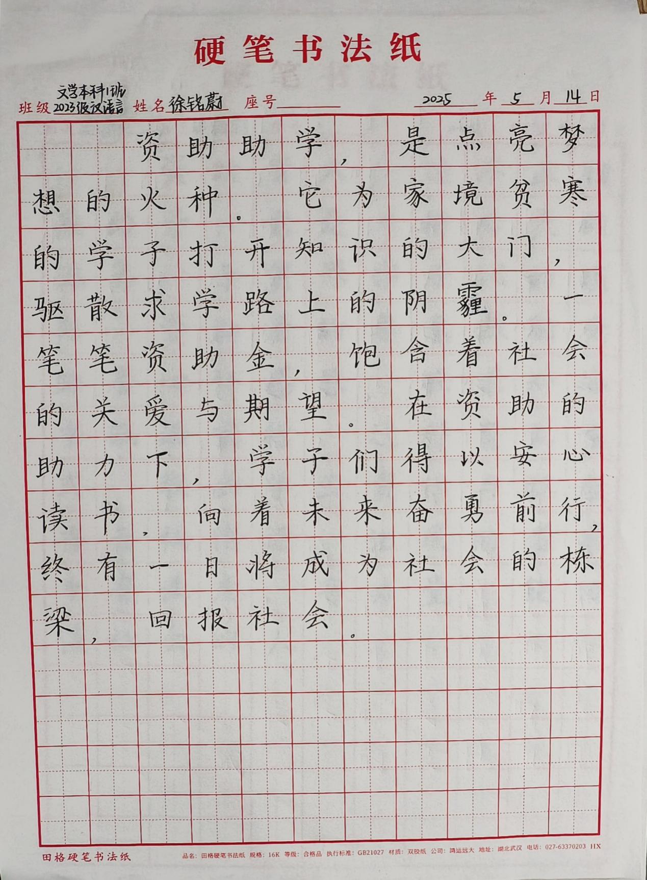 为了深入宣传资助育人政策,提高同学们对资助育人的认识,公司开展了以“资助育人”为主题的书法作品征集活动。此次活动旨在通过同学们的视角和创作,展现资助育人带来的积极影响,传递温暖与希望。