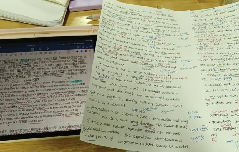 这一门是我们的专业课,也是我备考的重中之重。一定要去研究院校的真题,各院校侧重点不同,有的偏文学类,有的偏财经类,确定好方向,才有前进的目标。我用到的资料有武峰老师的十二天突破英汉翻译,韩刚catti,政府工作报告,黄皮书,各院校真题。我的翻译成绩是129,我自己是比较满意的。大家一开始可以先看网课,跟着老师入门,掌握一些基本的理论与技巧,打好基础,比如划分句子层次,找到句子间的逻辑关系。每个老师的翻译风格是不同的,我一直跟着徐老师的翻译走,所以再去看其他老师的翻译材料会不适应。译文会有好几版,翻译没有最好,只有更好,就考研阶段来说,能够完整表达句子意思,没有语法错误,翻译不带翻译腔,就已经很可以了,不要过度追求高级表达,先要保证自己的译文在语法层面是过关的。在备考期间,也可以准备catti三笔考试,这可以检测自己的翻译水平。在这里,我强推徐老师公众号,这里有各大院校的真题以及讲解,不过题目有难度,一开始翻的不好很正常,翻译需要日积月累,量变才能带动质变,自己翻完后,可以放到作文纠错软件检查自己的语法错误,然后再对照着译文改,积累好的表达,纠正自己的错误,每篇翻译都要限时完成。最重要的是要复盘,不去回顾自己做的翻译练习,就等于白做。在做翻译前复盘昨天的翻译练习,隔一段时间后,可以减少当天的翻译量,多留点时间复盘之前的翻译训练,这些翻译资料常看常新。