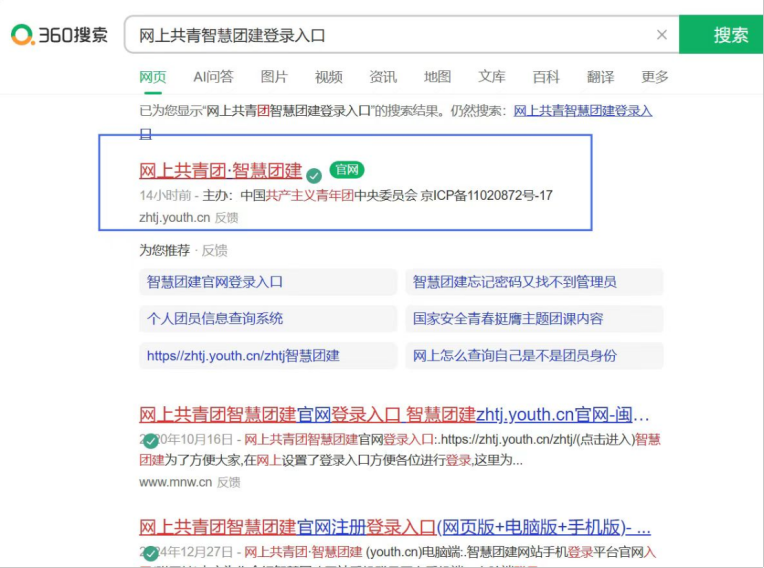 通过电脑自带的搜索引擎在网页搜索“智慧团建”(如图1所示)
