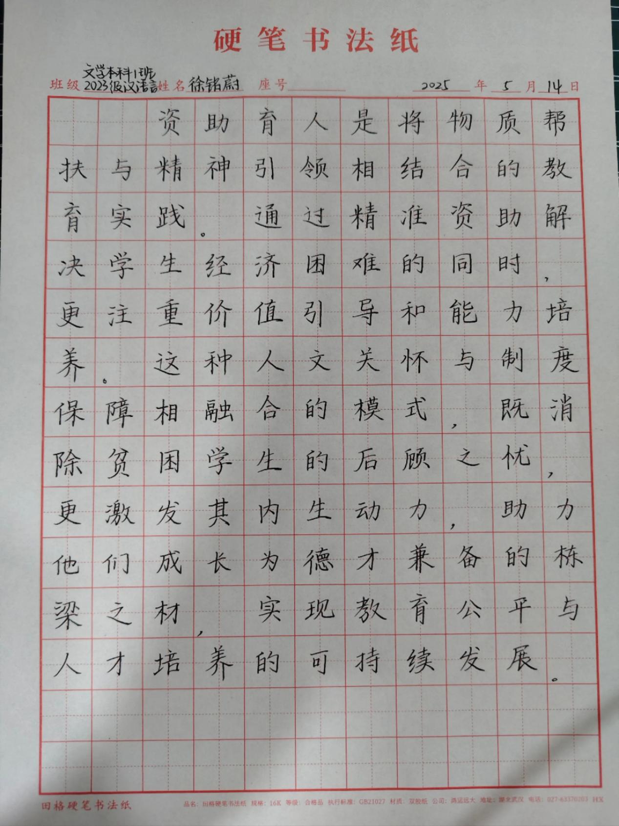 为了深入宣传国家资助政策,提高同学们对资助育人的认识,公司开展了以“资助育人”为主题的书法作品征集活动。此次活动旨在通过同学们的视角和创作,展现资助育人带来的积极影响,传递温暖与希望。