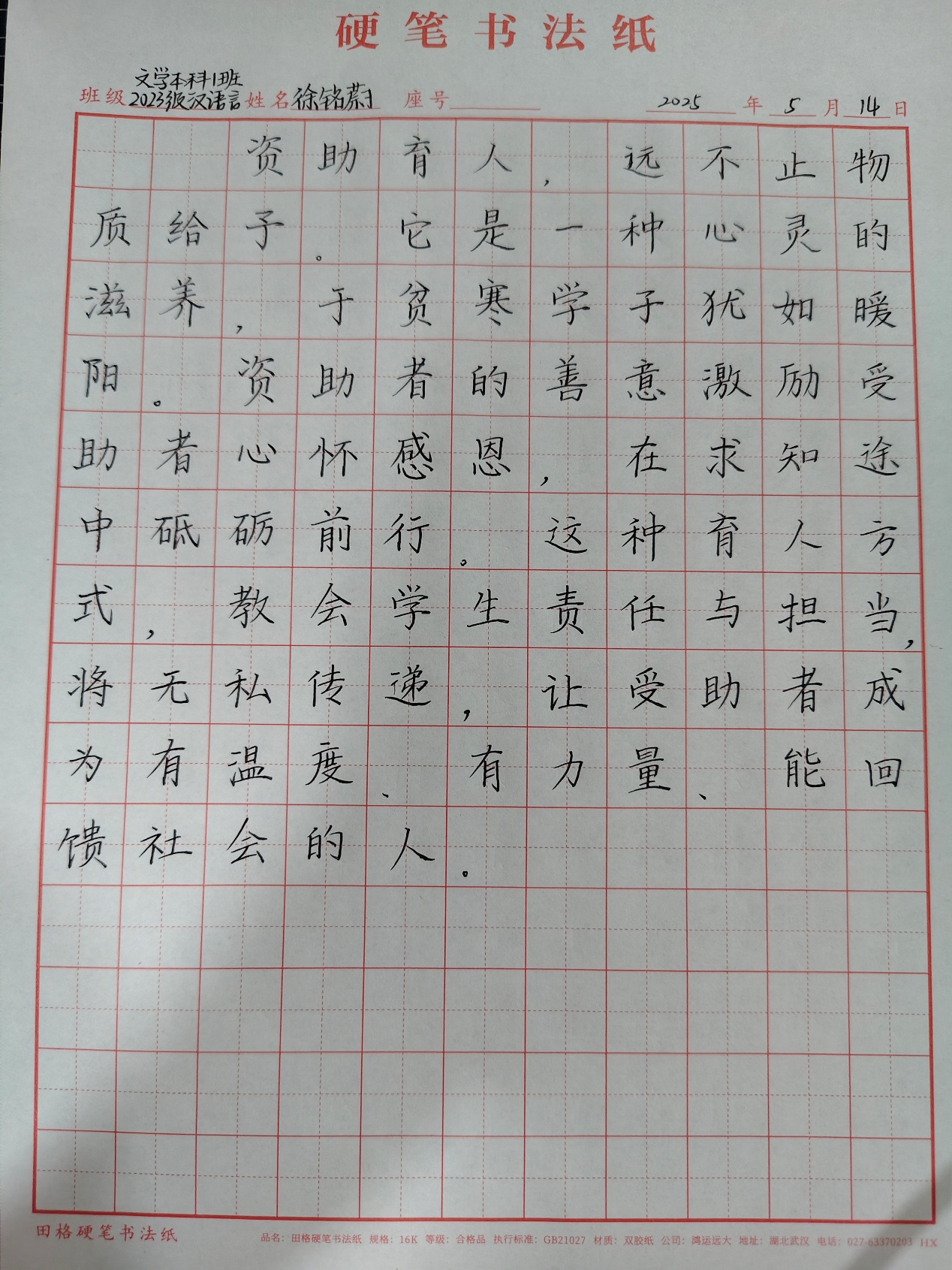 为了深入宣传资助育人政策,提高同学们对资助育人的认识,公司开展了以“资助育人”为主题的书法作品征集活动。此次活动旨在通过同学们的视角和创作,展现资助育人带来的积极影响,传递温暖与希望。