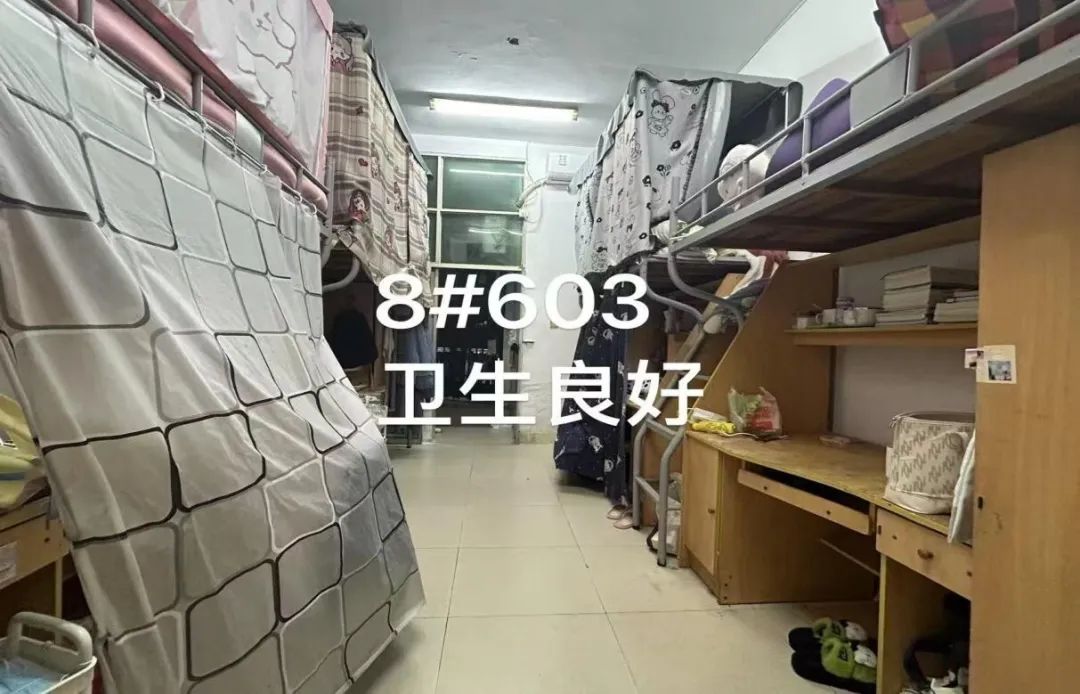 •大部分宿舍的卫生状况良好,地面整洁,床铺整齐,个人物品摆放有序。