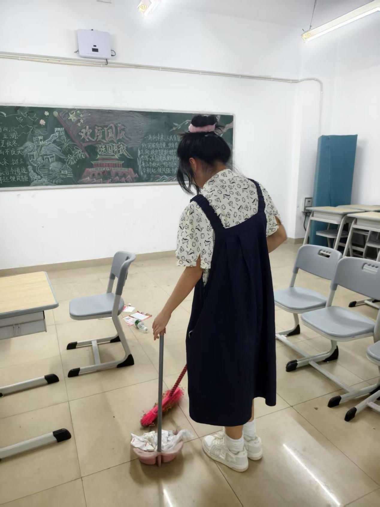 在打扫过程中,大家不怕脏、不怕累,干劲十足。即便汗水浸湿了衣衫,也没有丝毫怨言。大家齐心协力,相互配合,一边打扫,一边交流着对党的认识和学习心得,现场氛围热烈而融洽。经过大家的共同努力,原本有些杂乱、积尘的教室焕然一新,桌椅摆放整齐,地面干净如洗,黑板明亮清晰。看着焕然一新的教室,每个人的脸上都洋溢着满足的笑容。