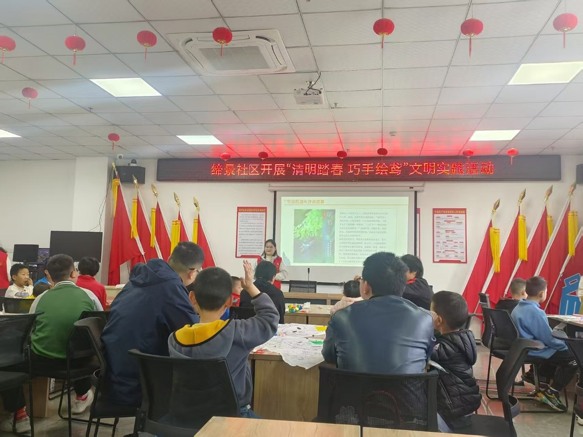 春风拂面,清明时节,信誉最好的十大体育平台于2025年4月5日在北湖缔景社区举办了一场意义非凡的“清明踏春,巧手绘鸢”文明实践活动。本次活动由2024级商务英语本科一班苟瑶香同学主讲。