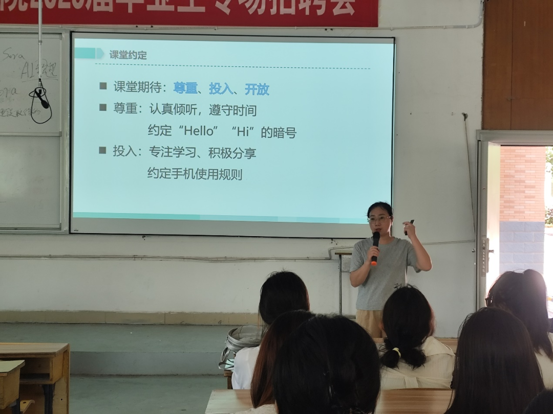 活动伊始,邓美老师以一个充满趣味的课堂约定小游戏迅速点燃了现场气氛。使原本稍显拘谨的教室瞬间充满欢声笑语。这个小游戏不仅拉近了师生间的距离,更让大家以轻松愉悦的状态投入到后续的学习中,同时也为接下来的干货分享营造了良好的互动氛围。