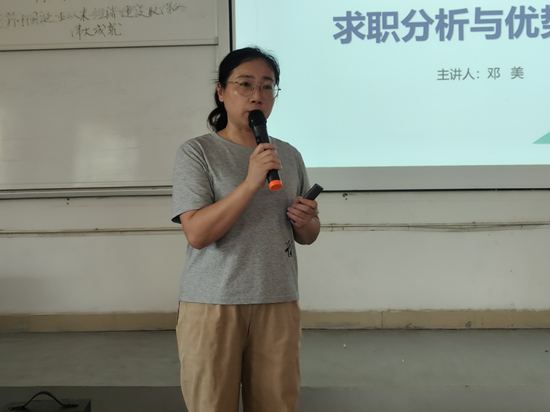 随后,邓美老师进入主题,从求职分析与优势识别等多个关键方面为同学们进行了深入浅出地讲解。在求职分析环节,邓美老师结合当下就业市场的现状和趋势,通过丰富的案例和翔实的数据,剖析了不同行业、不同岗位的用人需求。她提醒同学们,在求职前一定要做好充分的市场调研,了解目标行业的发展前景、岗位要求以及竞争态势,这样才能有的放矢地投递简历,提高求职成功率。