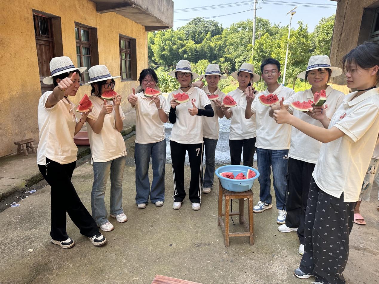 田间实践结束后,热情好客的农民邀请队员们到家中,品尝自家种植的西瓜。清甜多汁的西瓜,瞬间驱散了队员们一天的疲惫。大家围坐在一起,分享着一天的见闻与感受,欢声笑语回荡在小院。这一刻,队员们与农民之间不再是陌生人,而是朋友,是家人。