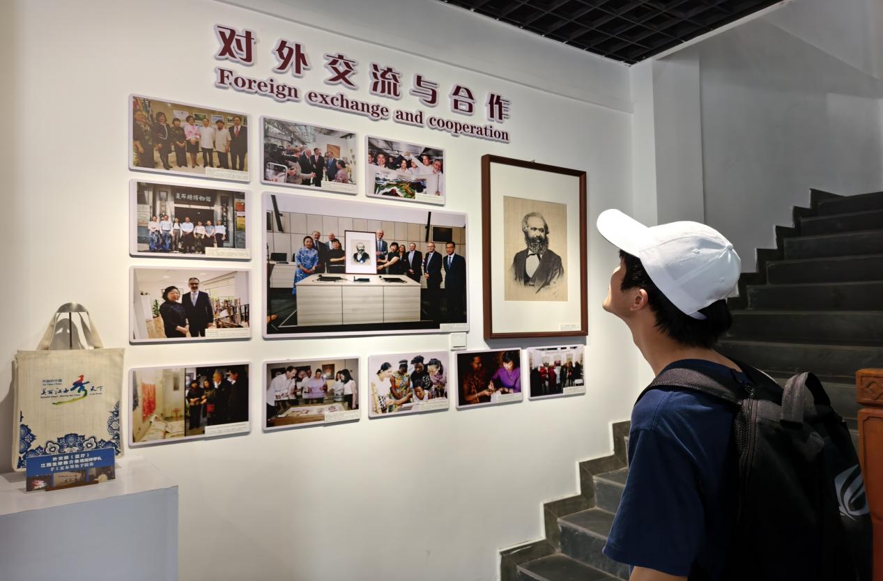 踏入馆内一楼,非遗夏布艺术刺绣文创展区创意满溢。夏布绣突破传统艺术形式,以更鲜活的姿态融入现代生活,从精致挂饰到实用摆件,传统技艺借文创之形,在现代生活中绽新颜,队员们穿梭其间,细品匠心巧思,感受古老技艺与当下生活的奇妙共振。