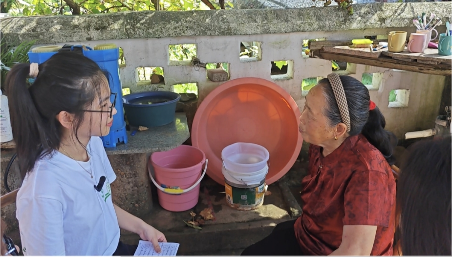 随后,深入村庄,我们的脚步停驻在了一位苗族奶奶家门前。这位苗族奶奶正坐在自家小院里,阳光透过枝叶的缝隙洒在她身上,勾勒出一幅宁静祥和的画面。我们围坐在奶奶身旁,开始了这场充满意义的对话。当我们小心翼翼地问起她是否还会说苗语时,奶奶的脸上浮现出一丝淡淡的惆怅,她轻轻摇了摇头说:“唉,已经不太会咯。”奶奶缓缓道来。在过去,虽然父母也常说普通话,但苗语毕竟是本族的语言,在家庭和族群内部交流时还是会频繁使用。然而,自从搬来江西后,生活发生了巨大的变化。在这个新的环境里,她与周围的汉族邻居朝夕相处,逐渐融入了这里的生活。时间一天天过去,她不仅能听得懂江西话,甚至在日常交流中也能说上几句。可与此同时,对本族方言苗语的记忆却像指缝间的沙,慢慢流逝,如今很多词汇都已经想不起来了。