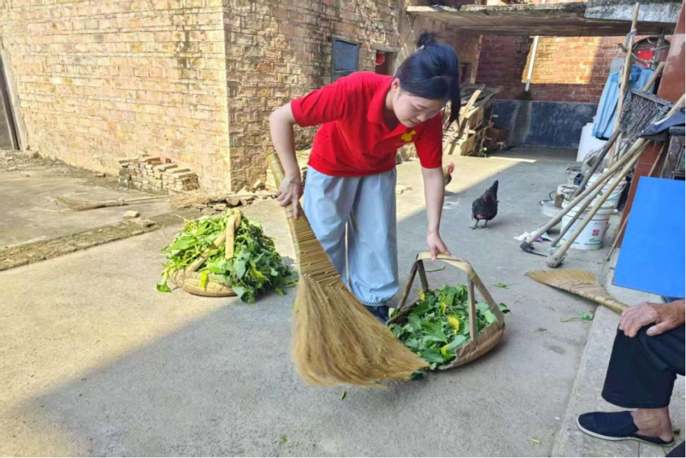 接着,队员们又帮奶奶干家务,在农村奶奶家的小院,阳光暖暖地洒下来。队员们围在院子里,有的拿着竹扫帚,把散落的菜叶、杂物轻轻归拢,扫帚与地面摩擦出沙沙声,像是和小院说着家常。有的蹲在木盆旁,搓洗奶奶刚从菜园摘回的蔬菜,清水里泛起细碎的泡沫,将菜上的泥渍慢慢带走。还有人拿起抹布,擦拭着老旧的桌椅,灰尘在阳光里飞舞又落下,让家具渐渐露出原本的模样。奶奶坐在一旁,看着大家忙活,眼角笑出深深的纹路,偶尔念叨几句“慢点干,别累着”,这平常又温馨的画面,成了三下乡里最动人的片段,满是烟火气与温暖。