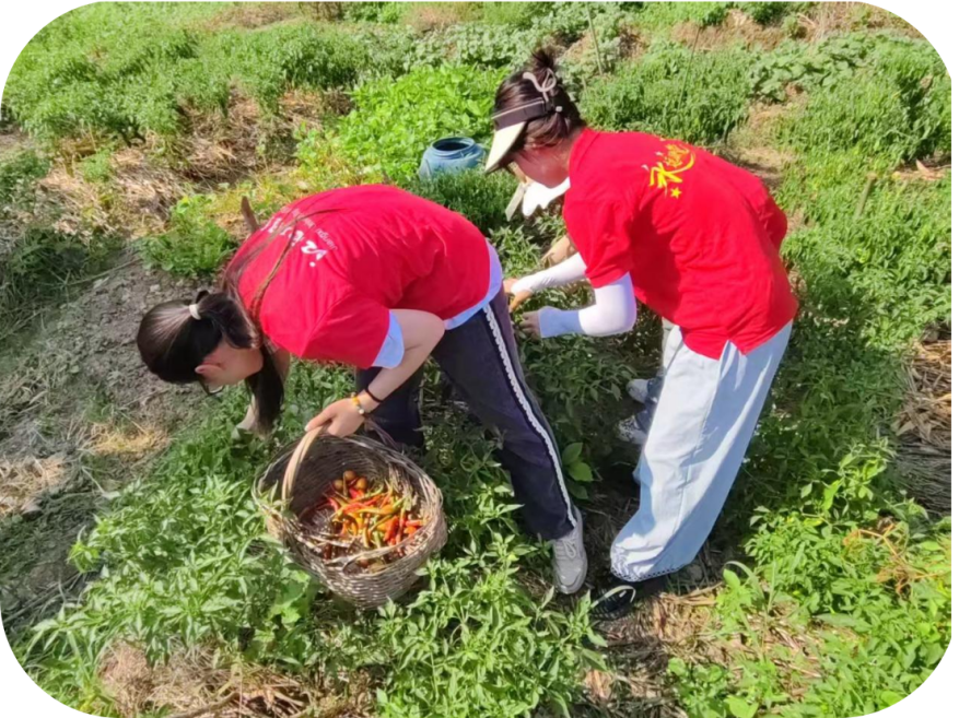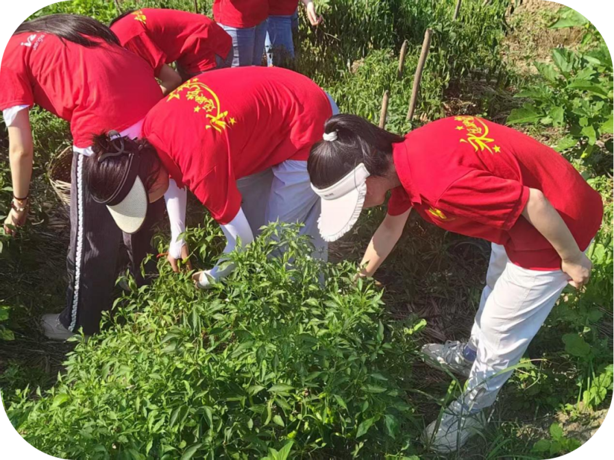 清晨的露水还挂在稻叶尖上,队员们已踩着田埂上的软泥往村里走。远远就看见张奶奶蹲在菜畦边摘菜,竹篮里已经堆了半筐带着泥土的空心菜。她抬头看见我们,浑浊的眼睛一下子亮起来,手里的活儿也停了:“公司里来的娃娃们,咋真的来帮俺干活哟?”话音刚落,晨风吹过稻田,沙沙的声响里,墨韵渝情社会实践队已经挽起了袖子——这个夏天,要让汗水混着泥土的气息,在这片土地上扎下根来。张奶奶看着我们忙活的样子,眼角笑出深深的纹路,从竹篮里摸出几个还带着晨露的番茄,塞到我们手里和采菜的篮子里:“娃娃们,干活渴了就吃,俺这菜畦里的果子,可比城里超市的甜!”