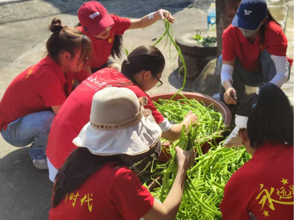 在新余市欧里镇哲村的土地上,“三下乡”实践队的青春身影,融入乡村日常。队员们围坐竹筐旁择菜,红衫与鲜绿菜梗相映,在交流里分辨老嫩,传承农作智慧;水井边洗菜,清水涤去泥污,让乡土气息在指尖流淌;案板前切菜,利落刀工将食材规整,为烟火美味奠基。田间俯身采摘,于菜丛中探寻成熟果实,把汗水洒进泥土。这一系列农活,是队员们触摸乡村肌理的方式,在劳作里读懂土地的馈赠,让青春与乡土共情,书写实践育人的鲜活篇章,也让哲村的夏日,因这群年轻人的参与,添了几分朝气与温暖。
