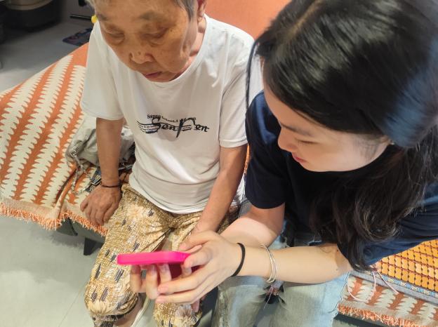 在这个数字化的时代,智能手机已成为人们生活中不可或缺的一部分。然而,对于许多老年人来说,智能手机却是一个陌生而复杂的“数字鸿沟”。为帮助老人们更好地融入数字生活,实践队决定从身边的老年人做起——无论是自家亲戚、相熟的街坊,还是社区里的长辈,都成了他们的教学对象,教学地点也不拘一处,社区活动室、老人的家中、街边的小广场……随处都能开展教学。