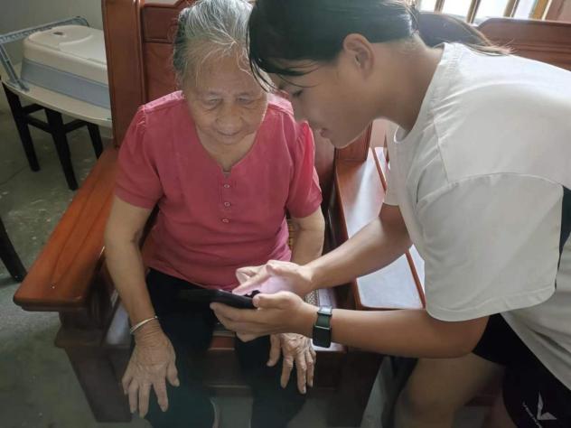 从解锁屏幕、拨打电话、发送短信、连接WiFi等基础操作,到微信视频、浏览网页、网上缴费等实用功能,实践队成员用通俗易懂的语言,耐心细致地为老人讲解,手把手带着老人们一步步尝试,帮他们跨越数字障碍。老人们学得专注认真,脸上洋溢着满足与喜悦的笑容,曾经的数字隔阂,渐渐成了连接亲情的新纽带。