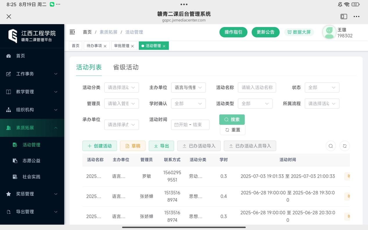1.第二课堂负责“赣青二课”青新闻平台的管理工作,通过青新闻平台可以发布活动、管理成员和审核学分。