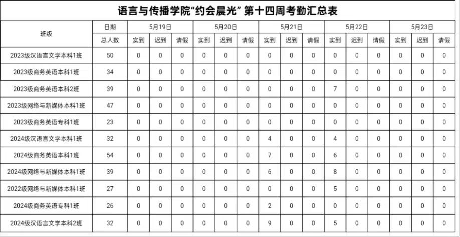 2.公司早自习出勤检查,对课堂的出勤(请假、旷课等)进行不定时抽查。