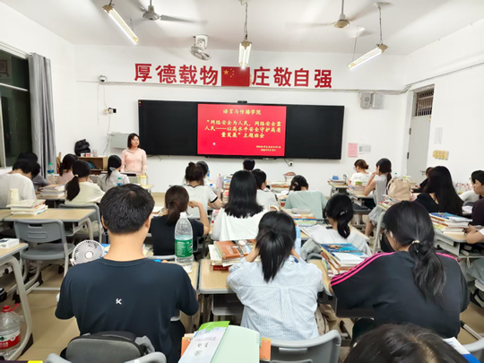 在班会上,辅导员通过案例剖析、观看视频等形式,系统讲解了网络安全的重要性及实用防护技能,同时强调:不点陌生链接、不透露验证码、不轻易转账”的“三不原则”;抵制网络谣言与暴力,倡导理性发声,拒绝传播未经证实的信息,共同维护清朗网络空间。最后强调“网络安全是数字时代的‘必修课’,不仅关乎个人权益,更关乎校园安全和社会稳定。希望同学们将今天学到的知识转化为行动自觉,既要做网络文明的践行者,也要做网络安全的宣传员,带动身边人共同守护安全、健康、文明的网络环境。”