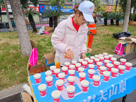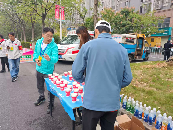 补给站是马拉松赛事的“能量港湾”,而志愿者们,就是这港湾里最贴心的“后勤兵”。他们有条不紊地布置补给物资:农夫山泉的纸杯整齐码放,功能饮料分类排列,急救物品随时待命。他们细心地为每个纸杯斟满水,确保选手们能及时补充水分;他们时刻关注补给品的存量,一旦出现空缺便迅速补满。