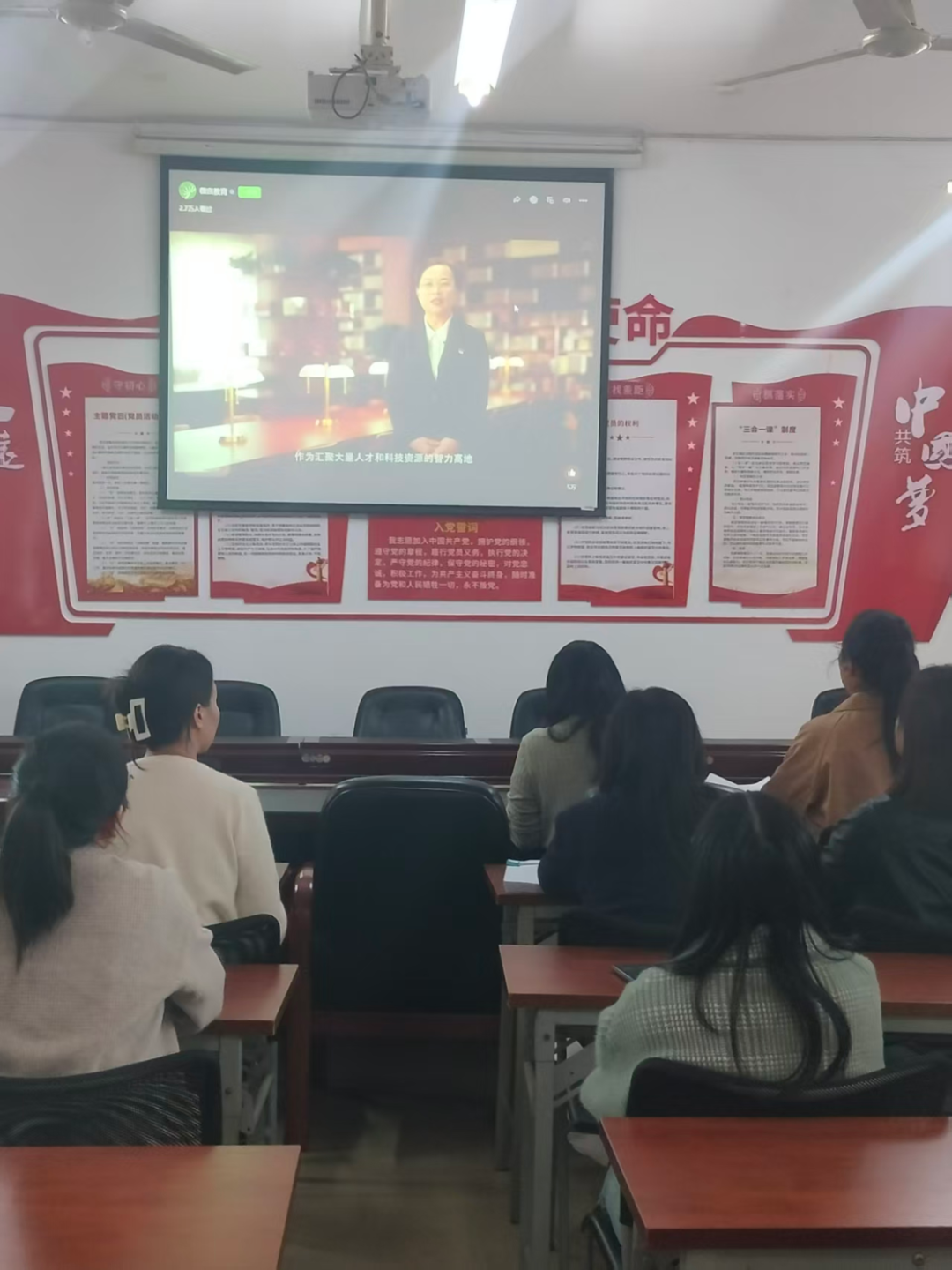 在C401会议室,教师们齐聚一堂,认真观看微党课直播。屏幕上,高校师生党员的精彩分享引发了现场教师们的热烈思考。大家纷纷表示,微党课中展现的社会协同推进教育发展的模式,为自身在教学、科研、育人工作中打开了新思路。
