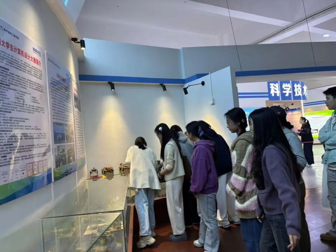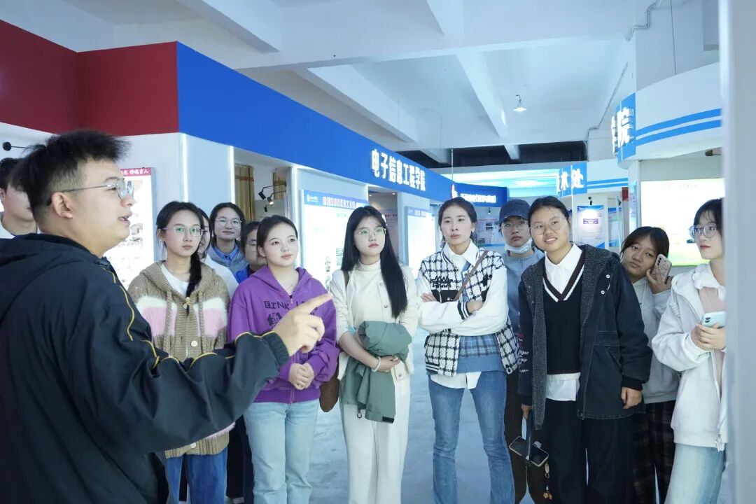 随后经后门楼梯登临四楼,踏入工业4.0世界,智能设备、数字化产线有序运作,触摸智能制造脉搏,感受科技赋能产业升级的磅礴力量。在华为ict见证“产教融合+实战育人”模式,解码网络安全人才成长密码。后经立德园智能制造产业公司参观省级现代产业公司培育阵地,漫步其间,了解团队建设、产业对接故事,体悟“立德树人+产业赋能”双轨并行的育人温度,最后经过第二课堂展厅+电子信息工程实验实训中心+教学成果展厅,从素质拓展到技术实操,从教学沉淀到成果输出,全方位展现校园育人生态,展现理论与实践交织的成长轨迹。